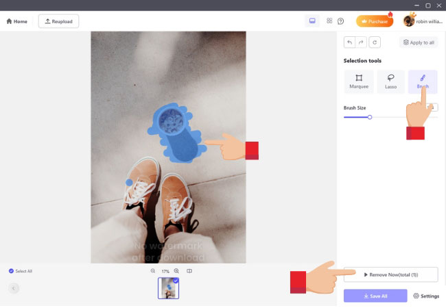 - Brush off the object that you want to remove then click Remove Now.
