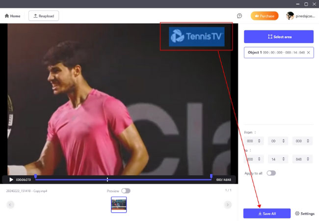 - Select the watermark area then click Save All.