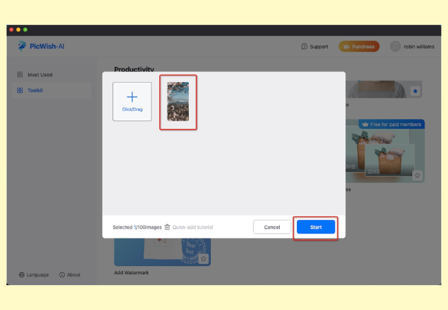 Follow the steps below to learn how to remove watermarks from a photo using PicWish.