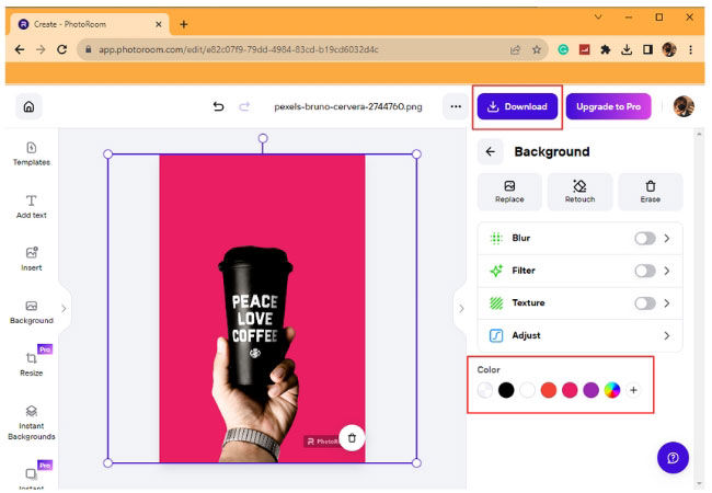- Click Background to select the color that you like then hit the Download button to get your image.