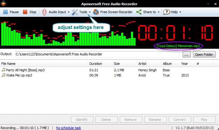 You can see that it is the one-click way to do playlist to mp3 conversion. This app has no limit on recording time and helps you organize recordings by creating scheduled tasks. Even much better, Apowersoft free online audio recorder will add ID3 tag for songs immediately.