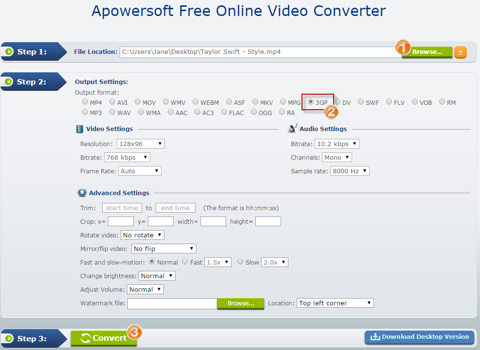 This one also comes with three steps to convert YouTube to 3GP. However, it doesn’t support as many video formats as the first option and it would only let you adjust the resolution. After selecting the video to convert, choosing 3GP as the output format and clicking convert, it takes so long for the conversion to even begin. If you want a faster solution, this may not be the best option for you. It’s not stable so it may not even work at times. If it doesn’t seem to work, you can try on the other converters though.
