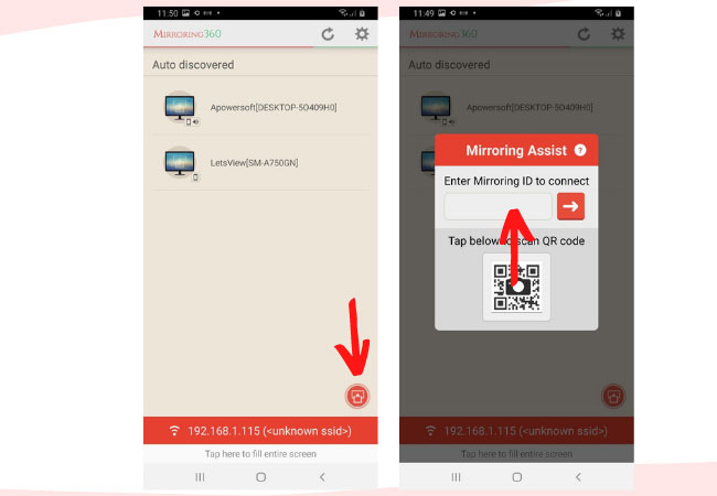 - Choose Mirroring Assist in the lower-right corner of the phone screen. Input the PC’s mirroring ID displayed on your PC screen.