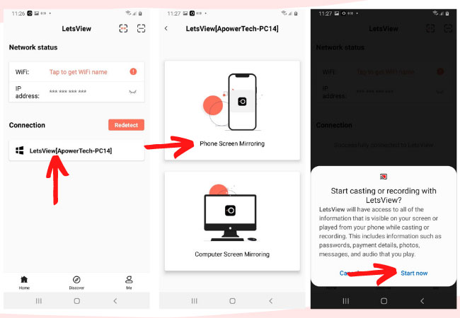 - Open the app on your Xiaomi phone and PC. Tap the name of your PC and choose phone screen mirroring then hit Start Now to begin.