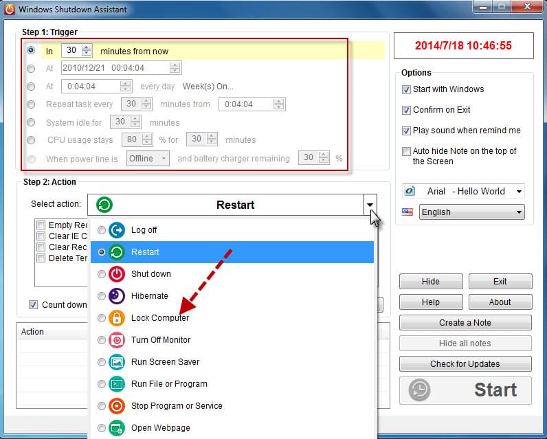 What makes the Windows Shutdown Assistant one of the best computer lockers is that you can specify the time in which you need to lock your computer. Just set the action as well as time, enter your desired password and the software will automatically lock the screen. On the other hand, you can let the computer clear recycle bin, browser history/cache and temporary files while locking. It is advised to set the countdown timer in order to remind you locking operation before it is being executed.