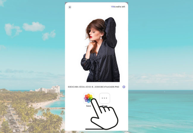 - Select the subject with transparent background to save it directly on your phone.