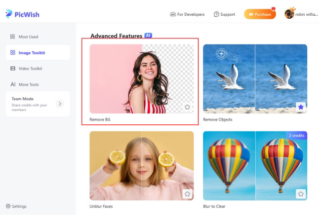 The next program to remove the background on pictures is PicWish. This amazing tool has been highly praised for its accuracy and speed, making it a popular choice for users of all levels, from beginners to intermediates. It provides an intuitive user interface and offers various filters and options for background removal. PicWish is a user-friendly tool designed for removing image backgrounds on a Mac. It utilizes AI technology to automatically detect and remove the background, allowing for easy replacement with a new background if desired. Moreover, it can be accessed either through a dedicated app or the online version, offering additional features such as bulk processing and image enhancement. Here are the steps that you need to follow to use this amazing app.