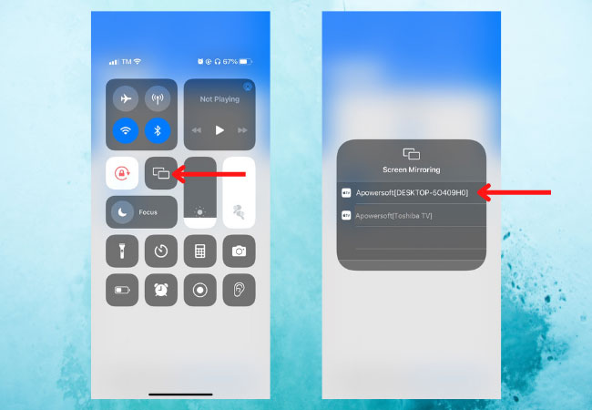 • Show the Control center, Tap Screen Mirroring then choose your PC to connect.